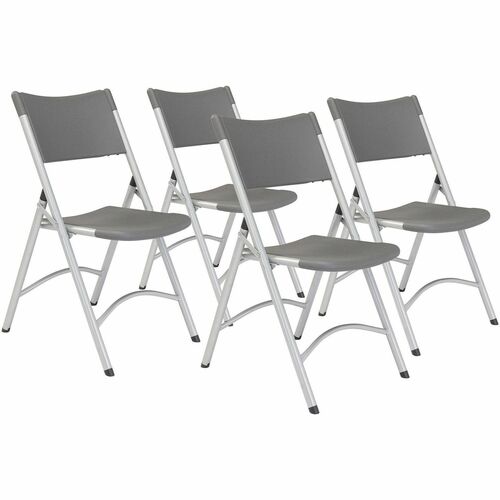 Charcoal Slate Seat Color - Plastic Seat Material - Charcoal Slate Back Color - Plastic Back Material - Silvertone Frame Color - Tubular Steel, Metal Frame Material - Charcoal Slate - Plastic, Resin - 4 / Carton