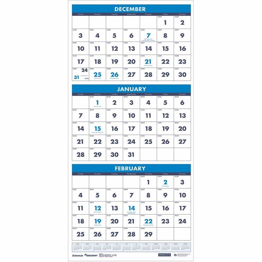 SKILCRAFT® Monthly Planner 14-Month 3 Month-View